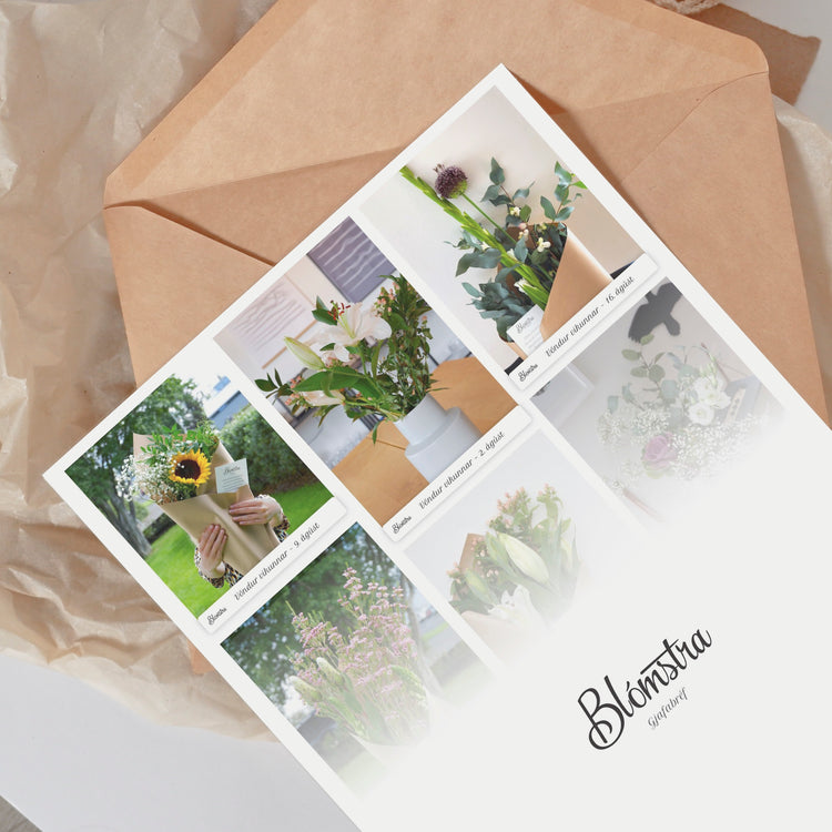 Viðtakandi gjafabréfs hefur svo samband við Blómstru með kóða sem gefinn er upp á gjafabréfi til þess að innleysa gjafabréf. Við spyrjum þá viðtakanda hversu ört vendir eiga að berast og á hvaða dagsetningum.