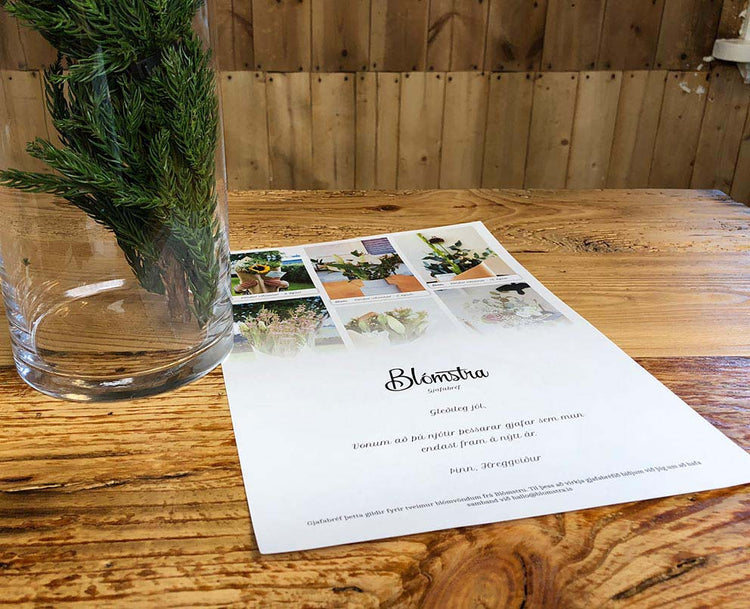 Þú getur skrifað sérvalda kveðju frá þér á gjafabréfið sem er sett sjálfvirkt inn á gjafabréf.